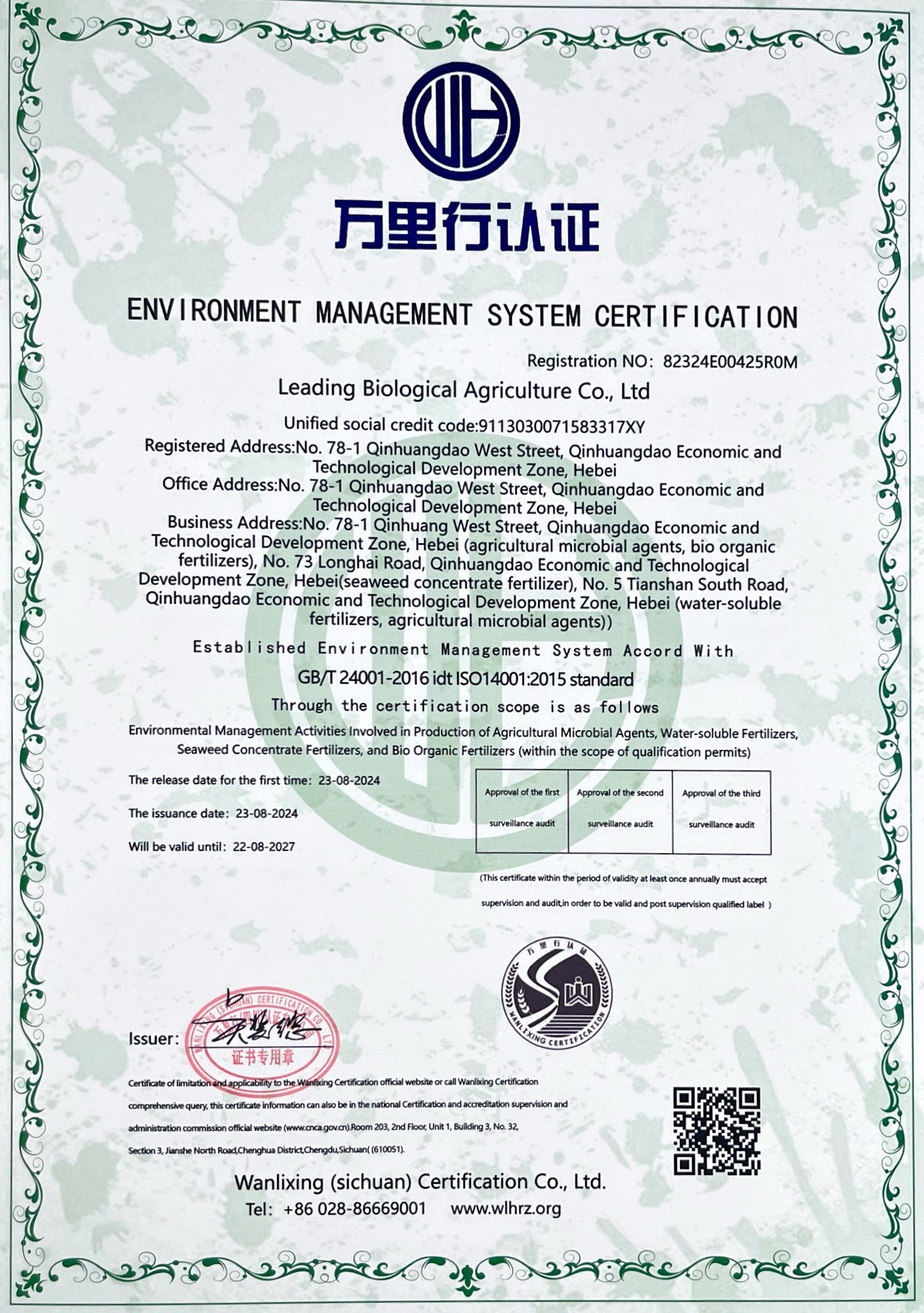 環(huán)境管理體系認(rèn)證證書