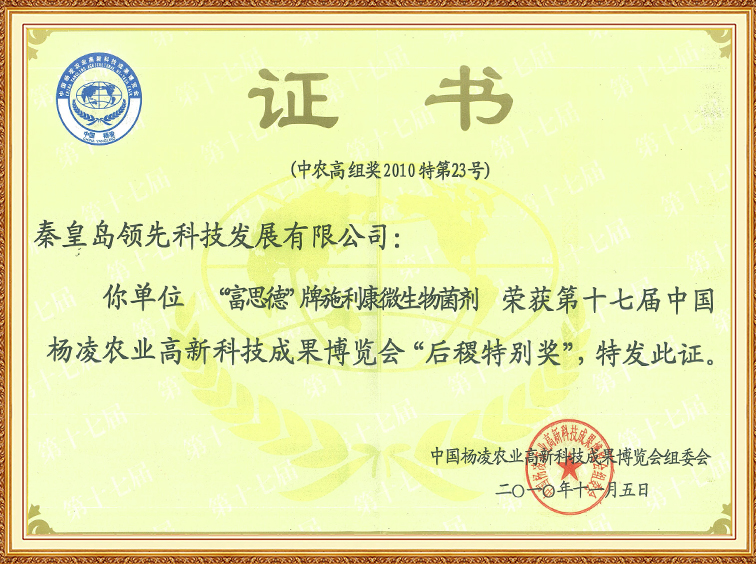 “富思德”牌施利康微生物菌劑—第十七屆中國楊凌農(nóng)博會“后稷特別獎”